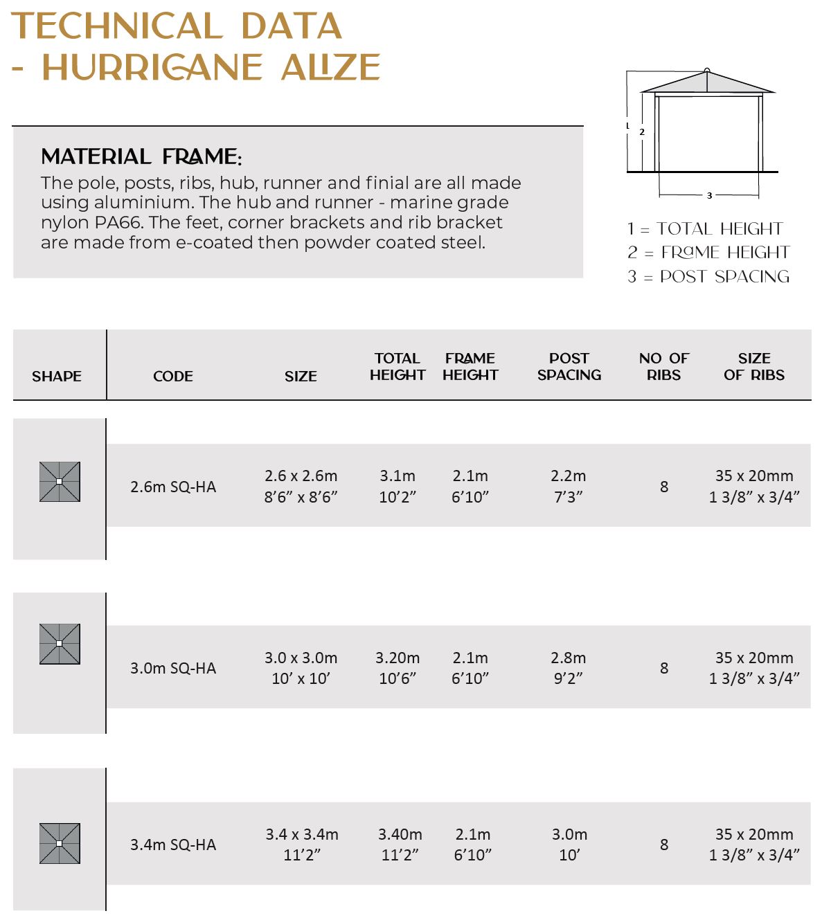 Este duradero pabellón ha sido sometido a pruebas exhaustivas por un equipo de ingenieros independientes. Durante las pruebas en el túnel de viento, el Hurricane Alize soportó velocidades de viento de unos sorprendentes 126 km/h, ¡unas condiciones meteorológicas extremas!